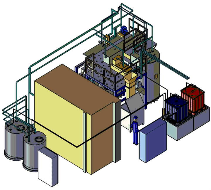 Komplette Lieferung, Montage und Inbetriebnahme von 2 Dichtprüfkabinen mit Berieselung und Portaltrockner als Standanlage für endmontierte Fahrzeuge inkl. Wasseraufbereitung am Prüf-/Finishbereich für verschiedene Fahrzeugtypen.